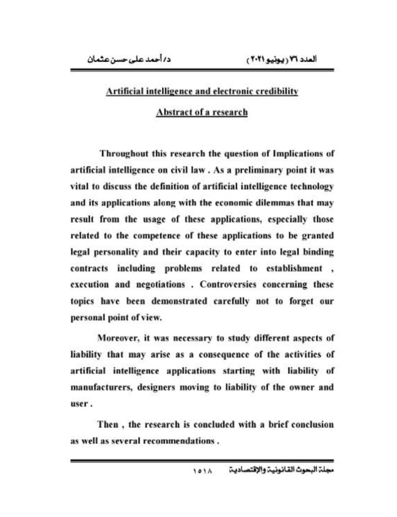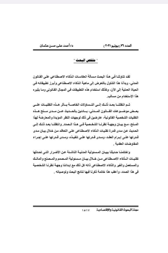 انعكاسات الذكاء الاصطناعي على القانون المدني دراسة مقارنة